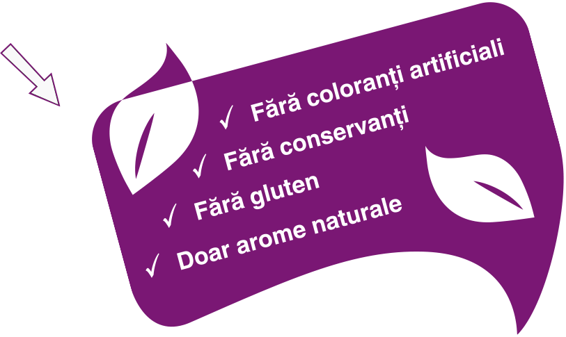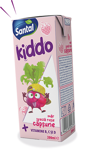 - Compoziție: sucuri concentrate și piureuri de: căpșune, mere și sfeclă roșie, cu adaos de vitamine B, C și D
