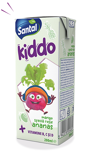- Compoziție: sucuri concentrate de: ananas, mango și sfeclă roșie, cu adaos de vitamine B, C și D